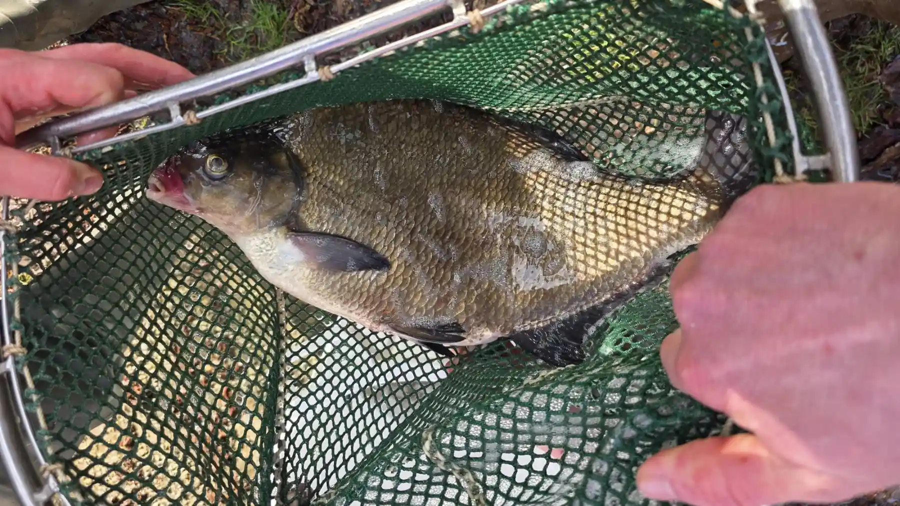 Brasse im Kescher – gut erkennbar die charakteristisch hochrückige Körperform